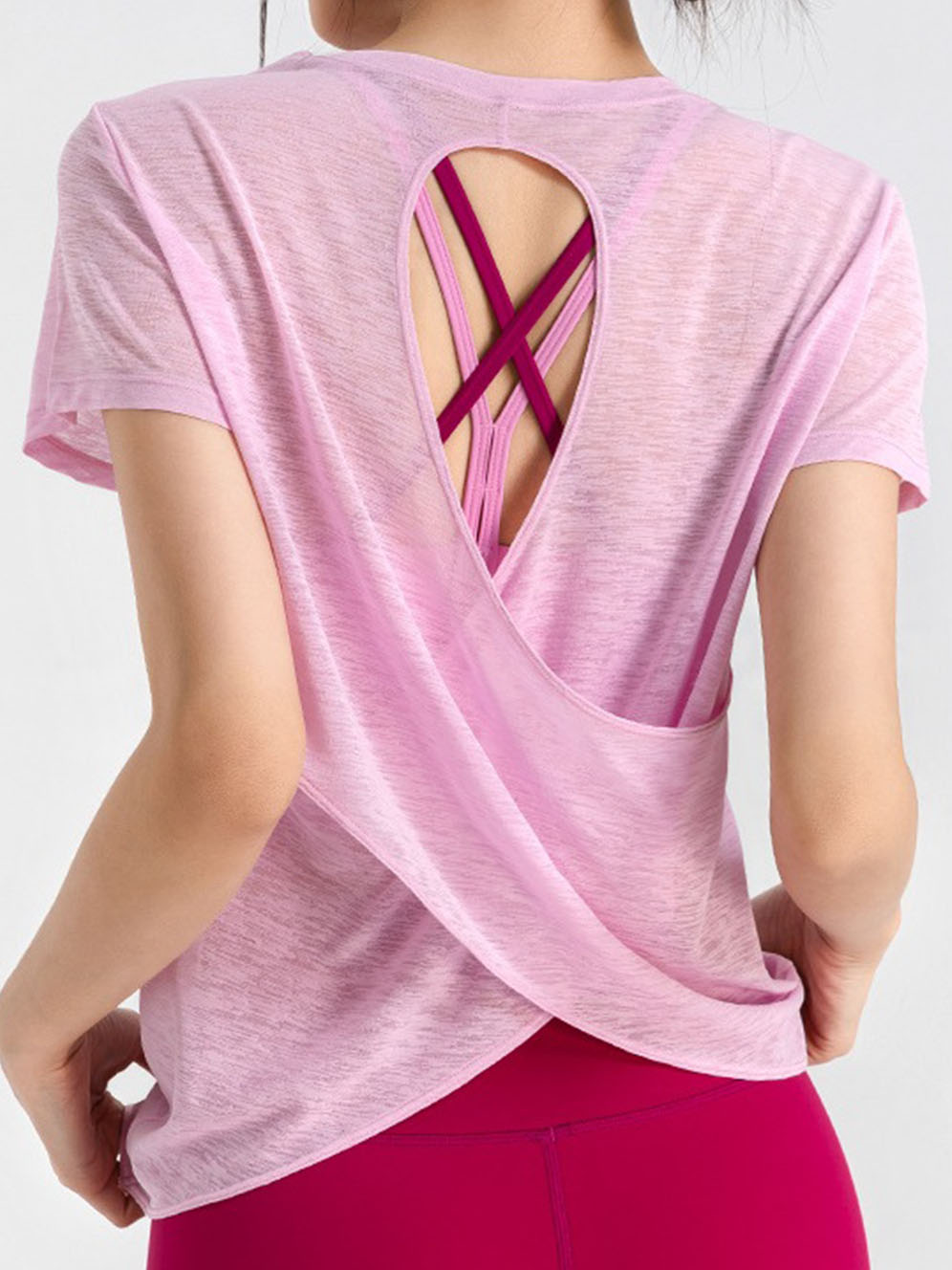 Wholesale Bamboo Knit Yoga Top Women Mesh Back Workout T-Shirt