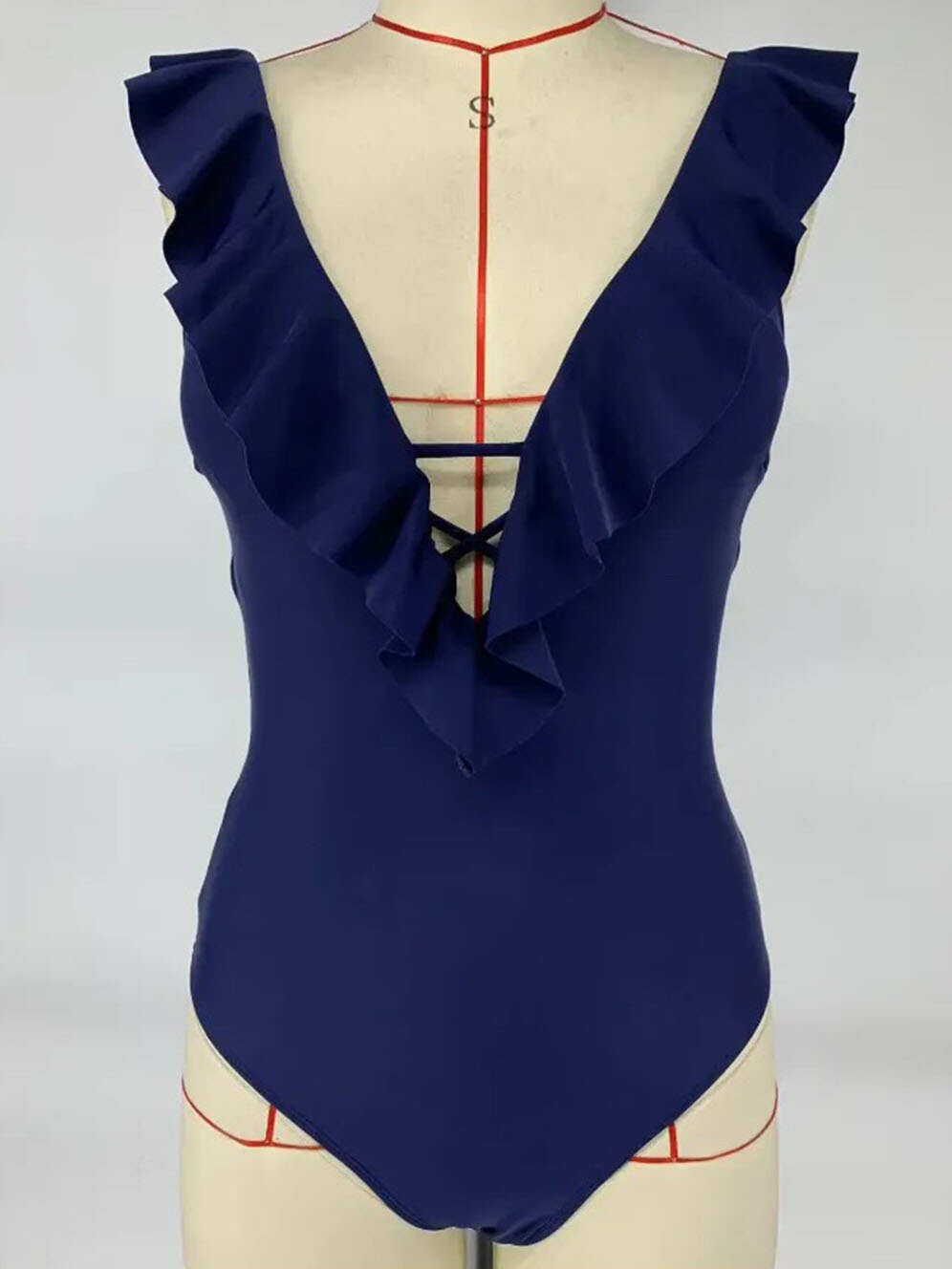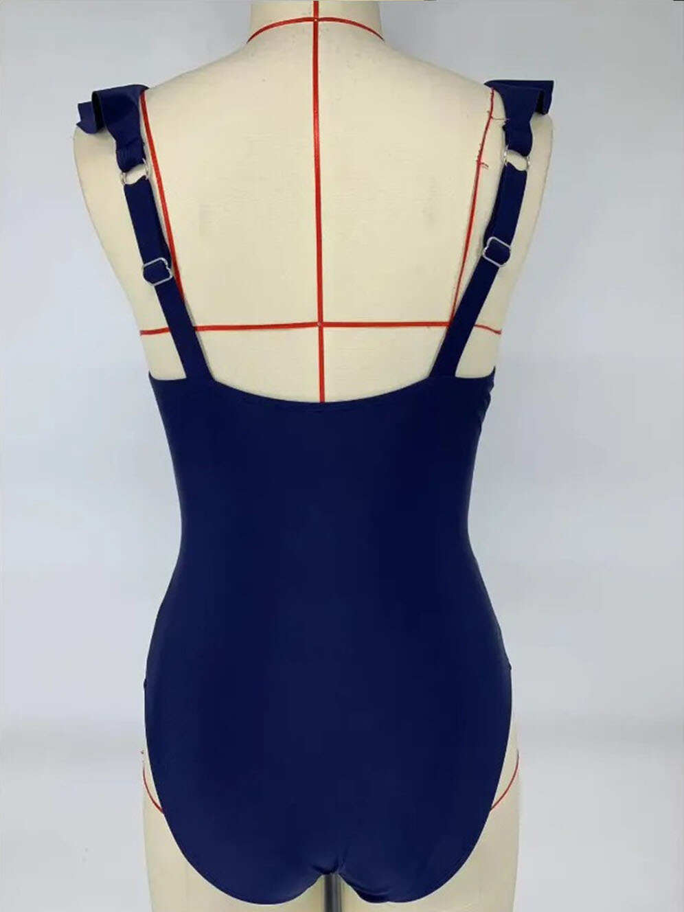 High Quality Custom factory made Ruffle One Piece Swimsuit for Women Fabric:Polyester/Spandex Custom logo:Embroidery, Heat transfer, Screen printing, Label sewing, Weavewaistband, Silicone printing Custom size from kids size to adult plus size Design:Based on customer requirement