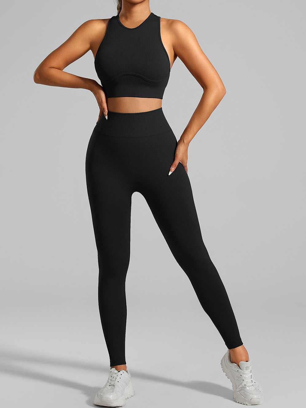 Custom Seamless Yoga Set Women Ribbed High Impact Sportswear
