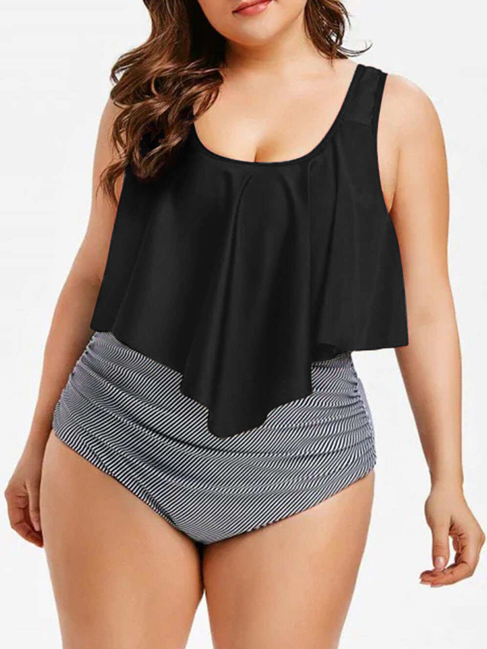 High Quality Custom factory made Plus Size High-Waisted Bikini Set with Ruffled Print Fabric:Polyester/Spandex Custom logo:Embroidery, Heat transfer, Screen printing, Label sewing, Weavewaistband, Silicone printing Custom size:adult plus size. Eg: 5XL Design:Based on customer requirement